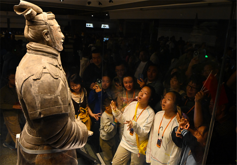 金秋送爽,双节同辉。2025年国庆、中秋长假期间,公众参观秦始皇帝陵博物院的热情持续高涨,假期八天共接待观众446055人次。为全力保障文物安全、优化观众参观体验,博物院提前部署、多措并举,通过延长开放时间、增加服务供给、强化现场疏导等一系列精细化服务,圆满完成了假期接待任务,实现了“安全、有序、优质、高效”的接待服务目标。 为最大限度满足游客的参观需求,博物院积极优化运营策略。一是动态调整并显著延长开放时间,在假期高峰日采取提前开馆、延迟闭馆的措施,有效拉长了接待时段,分散了客流压力。二是科学增加门票投放总量,在严格执行实名制分时预约制度的基础上,每日增加一万张门票投放量,充分挖掘接待潜力,动态调整各时段票额,竭力保障了广大游客的预约参观需求。 面对持续的客流高峰,博物院加强现场精细化管理,加强重点区域北大门,一、二号坑等区域的人员值守与流动巡查。同时,现场清晰的导引标识、不定时的广播提示以及工作人员的耐心引导,共同确保了参观流线顺畅无阻,营造了文明、安全的游览环境。 假日期间,博物院特别注重提升文化服务品质,每天提供了多场免费公益讲解,有效帮助中外观众深入解读秦代历史与传统文化,显著增强了参观的文化内涵与互动性,获得了观众的普遍赞誉。同时,央视直播、陕西日报、新华网等多家媒体报道我院假日接待服务工作。 整个2025年双节假期,我院干部职工坚守岗位,协同作战,以专业的素养和真诚的服务圆满完成了接待工作。通过一系列卓有成效的保障措施,不仅确保了院内文物安全与参观秩序平稳有序,更显著提升了观众的满意度和体验感,充分展现了世界级文化遗产地的管理水准与社会担当,为传承中华优秀传统文化、增强文化自信贡献了积极力量。 文/王亮 图/张天柱