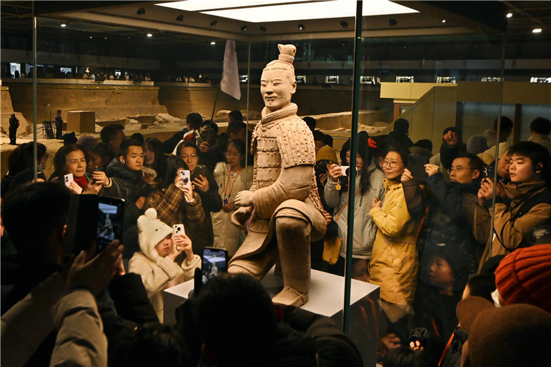 为满足节假日公众参观需求,秦陵博物院推出节日惠民举措,元旦期间每日开放时间延长30分钟,通过优化票务预约系统、增设服务窗口、加强安保疏导等措施,确保参观秩序井然。在北大门游客中心、一号坑展厅等重点区域,有讲解员和志愿者团队提供咨询导览服务,针对不同观众群体推出个性化讲解方案。