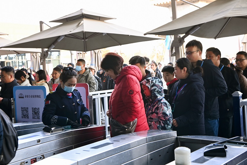 春节假期期间,秦陵博物院共接待观众531175人次,同比增长6.6%。为应对新春“文博热”带来的客流高峰,博物院提前部署,科学研判,通过延长每日开放时间、高峰期限流分流等措施,有效地满足了春节期间激增的观众参观需求。针对马年春节的参观特点,博物院加强了一线值守力量,在兵马俑展厅等重点区域实行动态疏导,确保参观秩序安全、平稳、有序。同时,与公安、交通、媒体等部门密切联动,构建了高效的应急保障机制,为世界各地观众营造了一个安全、舒适、和谐的参观环境。为进一步满足公众文化需求,博物院还在节日期间策划开展了“金拓载福 骏马迎新佳节”拓印活动、3D打印陶俑修复体验活动等公益教育活动,让观众在互动体验中感受秦文化的独特魅力。