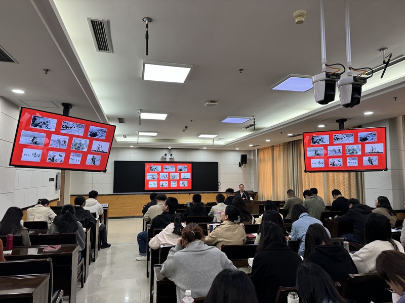 启动仪式后,原兰州军区陆军第47集团军司令部赵旭同志围绕革命精神传承作专题授课,他以亲历者视角还原“兰剑-B行动”战场实况,用镜头记录下“先救队长”的感人瞬间,生动诠释了军人不怕牺牲、忠诚报国的热血担当。自然资源部第一大地测量队王宏宇、王伟老师以测绘报国事迹作专题报告,他们深情讲述国测一大队七测珠峰、两下南极的奋斗历程,展现了测绘人“用脚步丈量祖国大地、把忠诚镌刻在地球之巅”的赤子情怀。闫朦教授围绕党史党建作专题授课,她立足深厚的理论功底与学术积淀,系统阐释了中国共产党百年奋斗的光辉历程与初心和使命,引导青年职工从党史中汲取奋进力量。