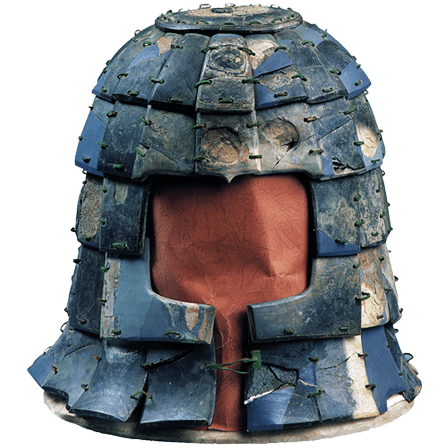 秦代石器,共有胄片74片,石甲胄的材料为青灰色岩溶性石灰石,质地细密,色泽均匀,经过磨制和钻孔以青铜丝串系,与秦俑身上塑造的铠甲相比更显得精制用工,反映了秦代高度发达的手工制造业和秦陵修建的繁复艰巨。收藏于秦始皇帝陵博物院。