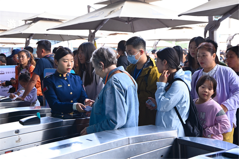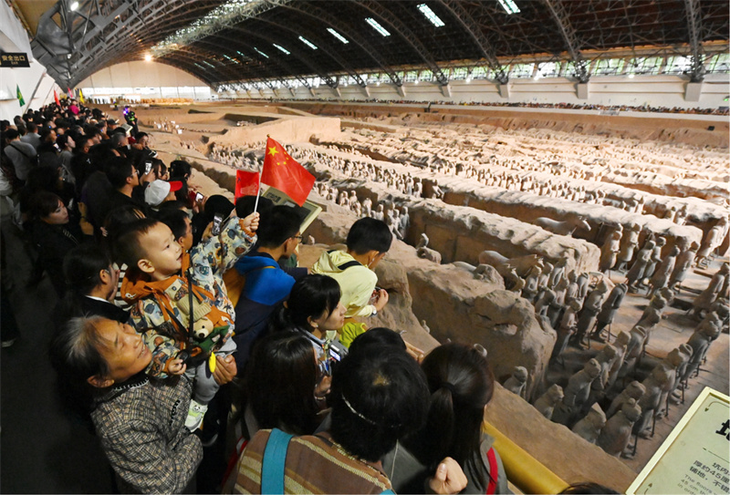 金秋送爽,双节同辉。2025年国庆、中秋长假期间,公众参观秦始皇帝陵博物院的热情持续高涨,假期八天共接待观众446055人次。为全力保障文物安全、优化观众参观体验,博物院提前部署、多措并举,通过延长开放时间、增加服务供给、强化现场疏导等一系列精细化服务,圆满完成了假期接待任务,实现了“安全、有序、优质、高效”的接待服务目标。