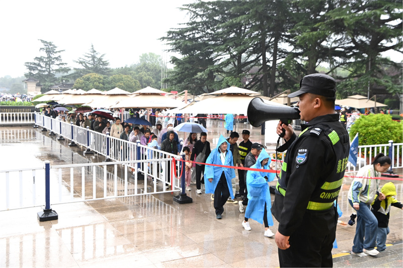 面对持续的客流高峰,博物院加强现场精细化管理,加强重点区域北大门,一、二号坑等区域的人员值守与流动巡查。同时,现场清晰的导引标识、不定时的广播提示以及工作人员的耐心引导,共同确保了参观流线顺畅无阻,营造了文明、安全的游览环境。