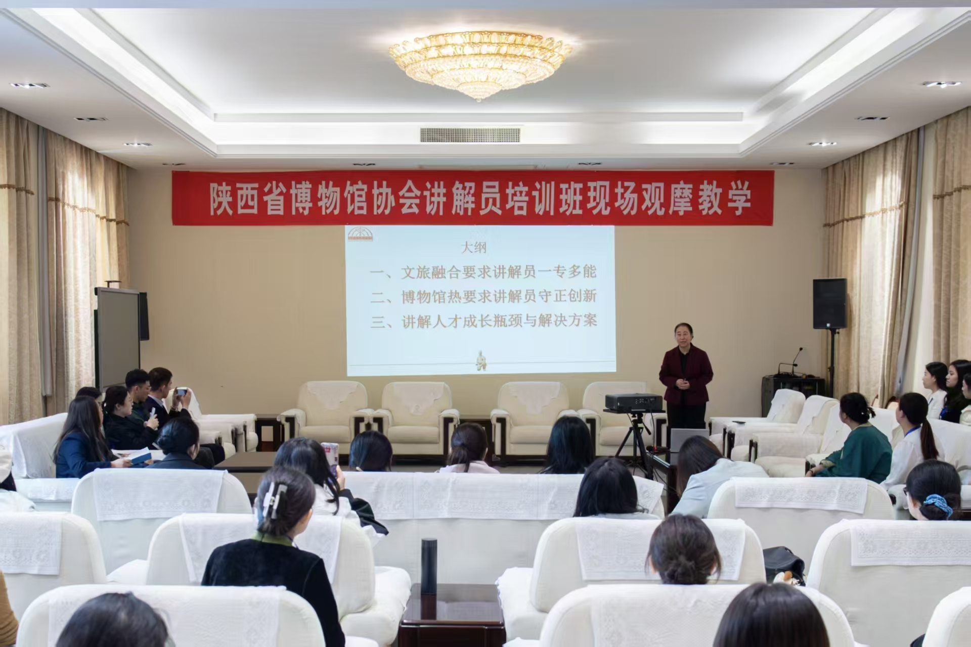 参观结束后,田静为学员作了题为《讲解员队伍的管理与培训》的专题讲座。她结合秦陵博物院实践,围绕新时代文旅高质量发展背景下博物馆的发展目标、讲解人才培养路径及当前面临的挑战与对策进行了系统阐述。