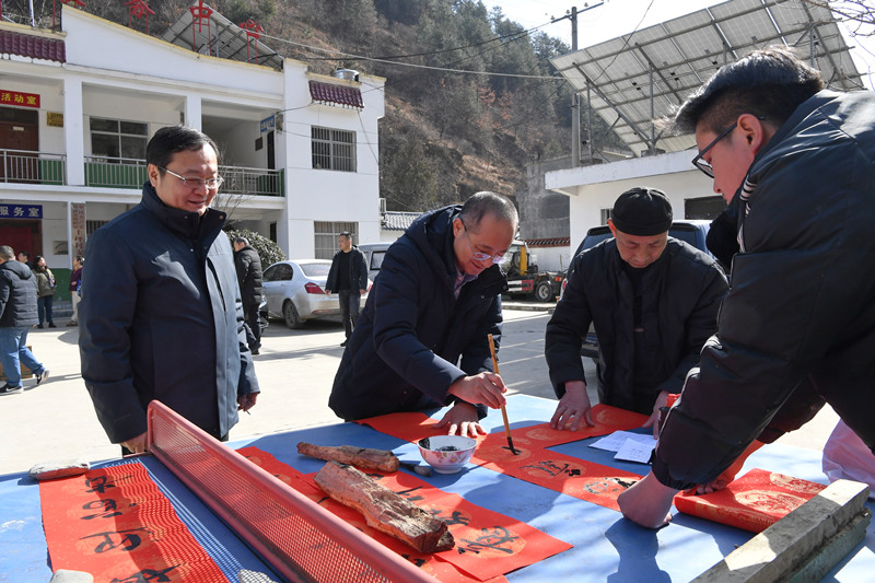座谈会后,系列暖心活动有序开展。院领导为上坪村21名应届大学生发放助学金,勉励同学们勤学善思、笃行致远,以学识本领回报家乡、奉献社会;亲切慰问驻村工作队与村“两委”干部,送上新春祝福与组织关怀,勉励大家坚守岗位、履职尽责、接续奋斗;为现场群众发放新春春联,营造喜庆祥和节日氛围,并走访慰问老党员、困难群众,详细了解生产生活、医疗保障、家庭收入等情况,耐心倾听群众诉求,把温暖与关怀送到群众心坎上。