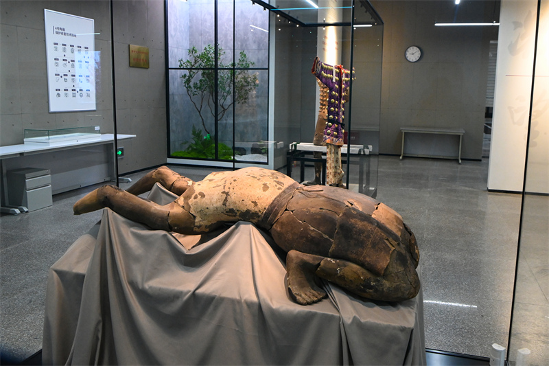 展厅面积450平方米,展出珍贵文物5件(组):4号百戏俑(及其复原服饰)、28号百戏俑、一号坑出土的铠甲武士俑(残片一组)和陶马(试拼,未修复),以及秦始皇帝陵C区一号墓出土铜鼎(残片一组)。为满足普通观众对文物保护修复工作的好奇,增加他们对文物背后故事的了解,展览采用全场景沉浸式设计,让观众真实体验了在文保实验室“打卡上班”的感觉;并利用“我在秦俑修文物”的互动活动,增加观众的参与感。