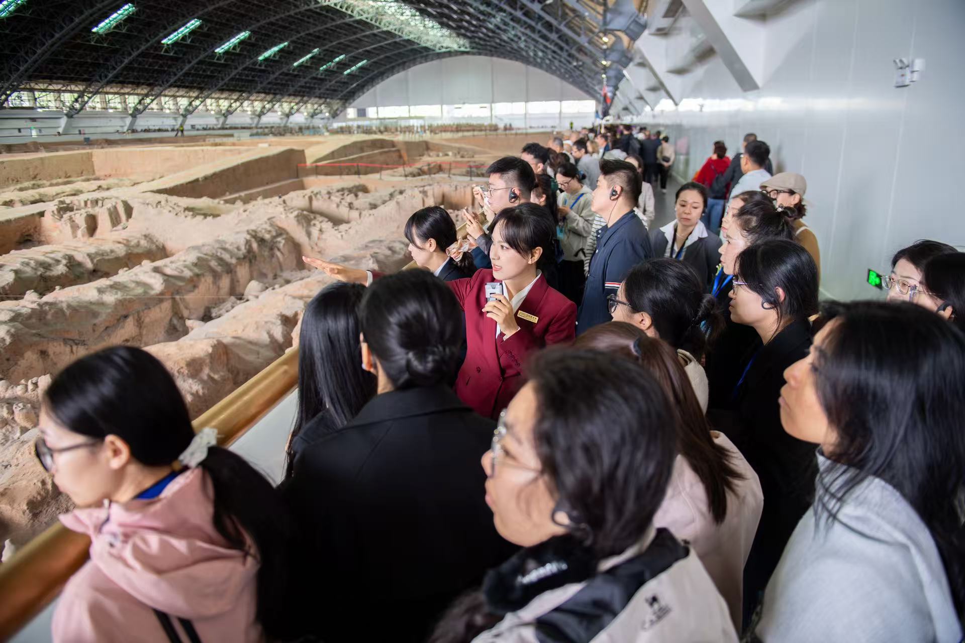 10月13日,陕西省博物馆协会第47期讲解员培训班50余名学员来到秦始皇帝陵博物院开展等级接待现场观摩教学。作为拥有丰富等级接待经验、成熟现场教学体系及专业讲解团队的文化单位,秦陵博物院已连续十余年承担全省及全国讲解员培训班的现场教学工作。