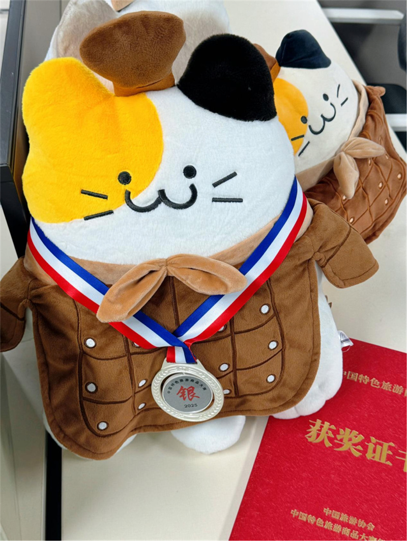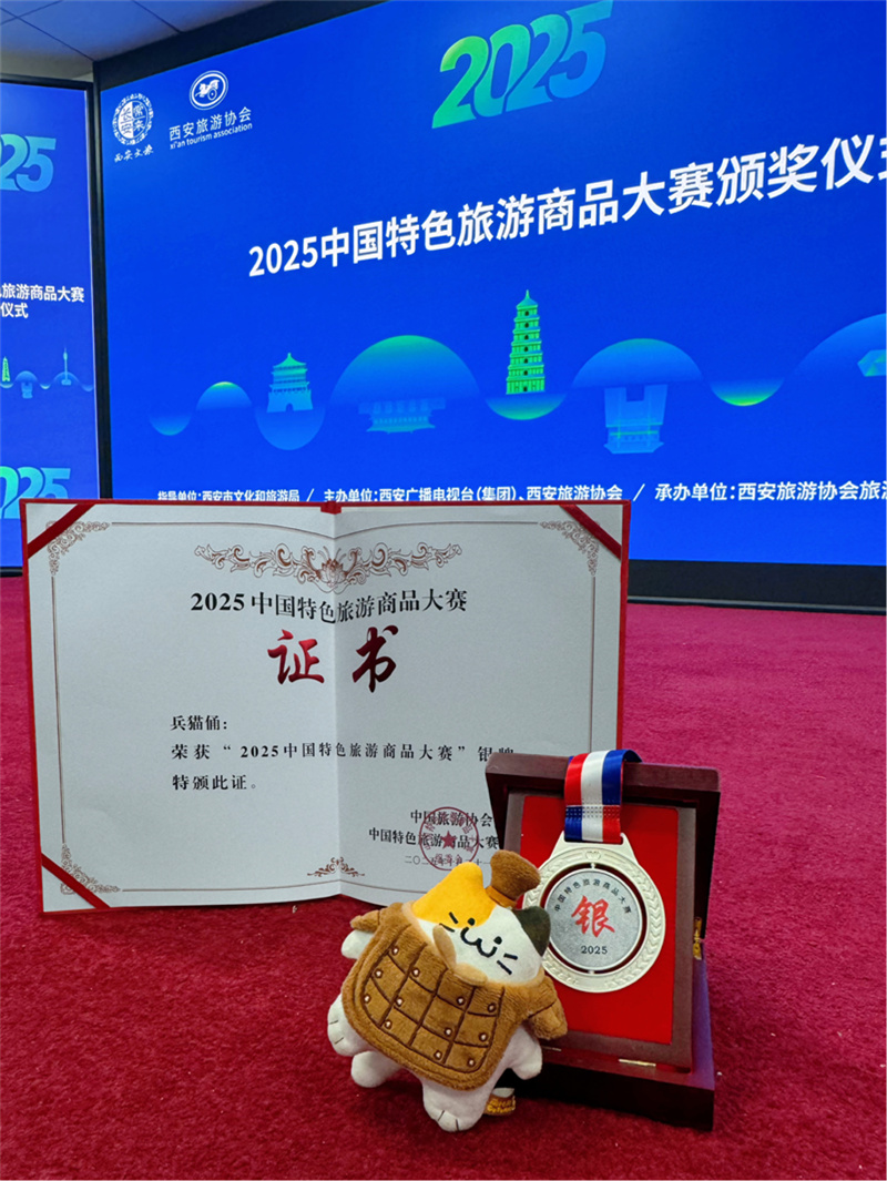 2025年10月31日,由中国旅游协会主办,青海省文化和旅游厅、青海省工商业联合会、西宁市人民政府合作主办的“2025中国特色旅游商品大赛”颁奖典礼于西宁青海体育中心圆满落幕。经过激烈角逐与严格的三轮评审,秦始皇帝陵博物院报送的“兵猫俑”毛绒文创系列,从全国2116套参赛作品中脱颖而出,荣膺大赛银奖。
