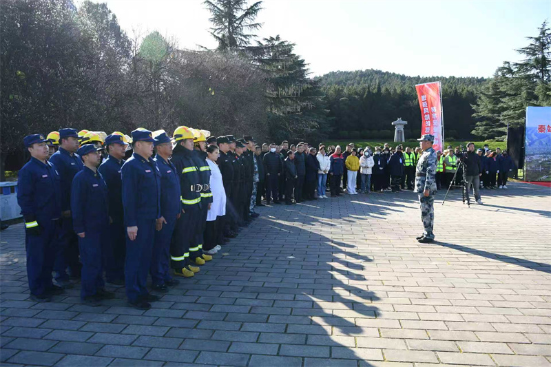 为深入贯彻落实国家关于安全生产和消防工作系列重要指示精神,响应全国“消防宣传月”活动部署,切实提升应对突发火灾事件的协同处置能力与应急管理水平,围绕“预防为主,生命至上—安全用火用电”主题,秦陵博物院于2025年11月18日在丽山园开展了“森林火灾消防应急综合演练”。秦始皇帝陵博物院副院长马军辉出席活动并致辞,临潼区文化旅游局、临潼区应急管理局、临潼区消防救援大队及公安临潼分局秦陵派出所负责人莅临观摩指导。