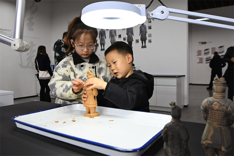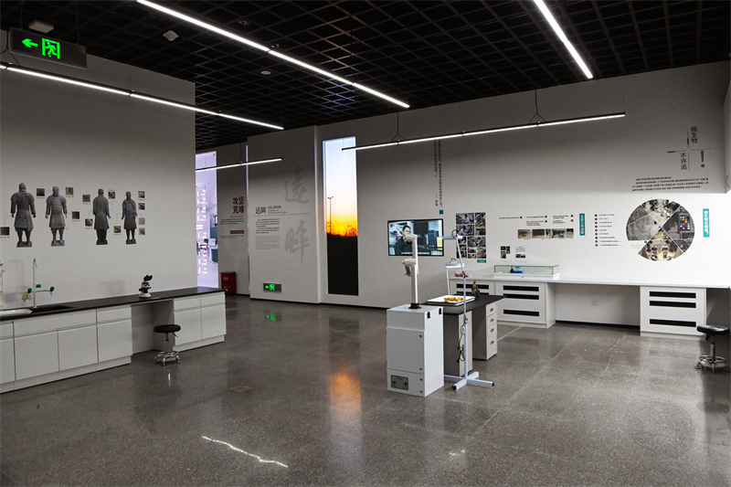展厅面积450平方米,展出珍贵文物5件(组):4号百戏俑(及其复原服饰)、28号百戏俑、一号坑出土的铠甲武士俑(残片一组)和陶马(试拼,未修复),以及秦始皇帝陵C区一号墓出土铜鼎(残片一组)。为满足普通观众对文物保护修复工作的好奇,增加他们对文物背后故事的了解,展览采用全场景沉浸式设计,让观众真实体验了在文保实验室“打卡上班”的感觉;并利用“我在秦俑修文物”的互动活动,增加观众的参与感。