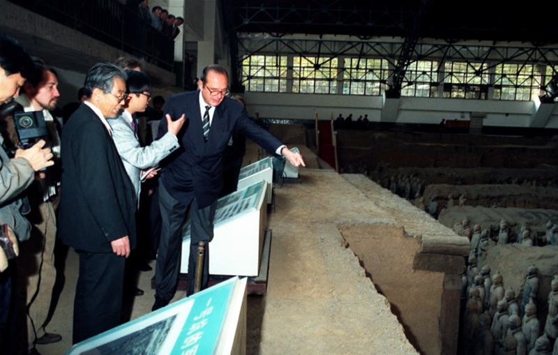 2019年9月26日,当秦始皇帝陵博物院(秦兵马俑博物馆)所有员工还沉浸在秦兵马俑发现45周年、秦始皇帝陵博物院建院40周年的喜悦中时,惊闻法国前总统雅克·勒内·希拉克逝世的消息,作为秦兵马俑的守护者与秦文明的传承者,我们深感震惊,无比悲痛!因为在秦兵马俑走向世界、享誉全球的过程中,希拉克先生功不可没。是他独具慧眼,早在秦兵马俑陪葬坑发掘之初,就称赞秦兵马俑是“世界第八大奇迹”。从此,“世界第八大奇迹”就成为秦兵马俑的代名词。